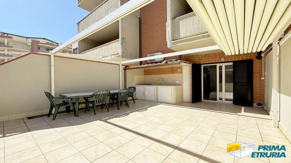 QQUESTOTHE "BUILDING" COMPLETE CONSTRUCTION IS SITUATED IN THE CENTRAL MARINE GROSSETO AREA ON THE SEA, DEVELOPED ON FIVE LEVELS EQUIPPED WITH EASY. ARCOBALENO STUDIO 15: APARTMENT 2 + 2 BEDROOMS FIRST FLOOR WITH ELEVATOR, COMPOSED OF LIVING ROOM WITH COOKING WALL AND DOUBLE BED, INTERPARET WITH DOUBLE BED, BATHROOM WITH SHOWER BOX, LARGE TERRACE EQUIPPED WITH CHAIRS AND UTENSILS WITH VIEW SUL COURSE . ACCURATE FURNISHED COMFORTABLE AND FUNCTIONAL FOR A NICE HOLIDAY. THE APARTMENT IS PROVIDED WITH TV, WASHING MACHINE, FRIDGE CONDITIONER AND AIR CONDITIONING. ARRIVAL Saturday, 17.00-19.30 / DEPARTURE Saturday at 08.00-10.00. Pets allowed only in small size and only on request ADDITIONAL COSTS: - light gas consumption â