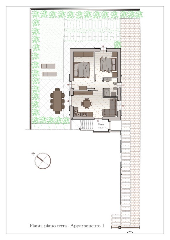 - Al piano terra, saranno realizzati due appartamenti trilocali con ingresso indipendente, giardino privato, veranda coperta e ampia taverna, ideali per chi desidera spazi esterni da vivere in ogni stagione e ambienti versatili.