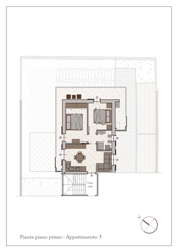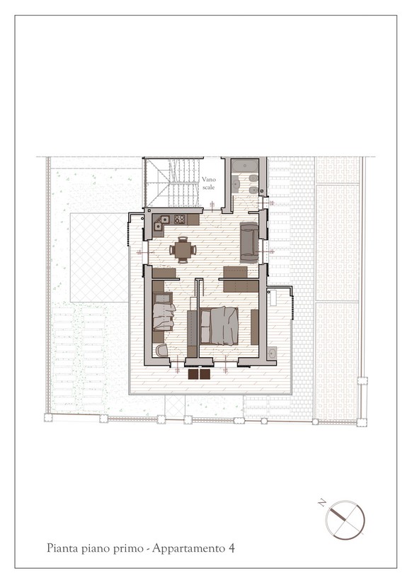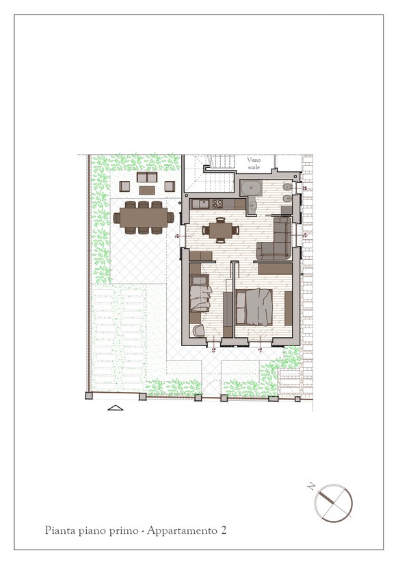 - Al primo piano, troveranno spazio due appartamenti serviti da scala condominiale, ciascuno dotato di comoda terrazza, perfetta per momenti di relax all’aria aperta.