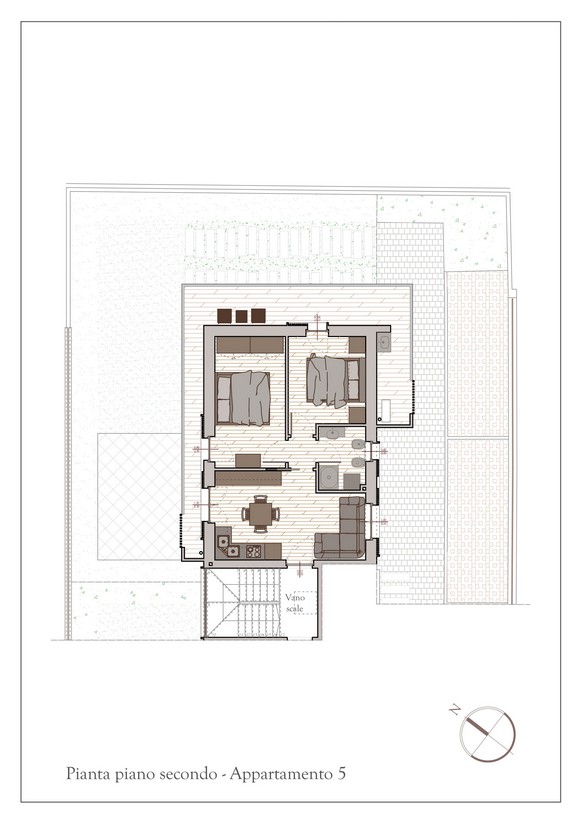 - Al secondo piano (senza ascensore), sono previsti due appartamenti con terrazze aperte e un piacevole affaccio libero, ideali per chi ama luminosità, privacy e una vista più ampia sul contesto circostante.